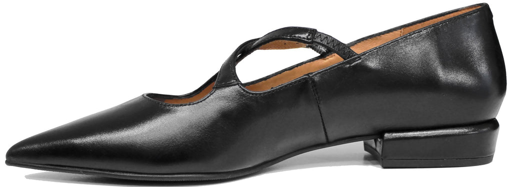 vista laterale scarpe donna di tendenza ballerine nere  eleganti a punta in vera pelle con cinturino incrociato marchio angel alarcon 25531 stile casual per ufficio con tacco quadrato basso calzature artigianali online comode con negozio a civitanova marche collezione moda spedizioni in tutta Italia pagamento alla consegna