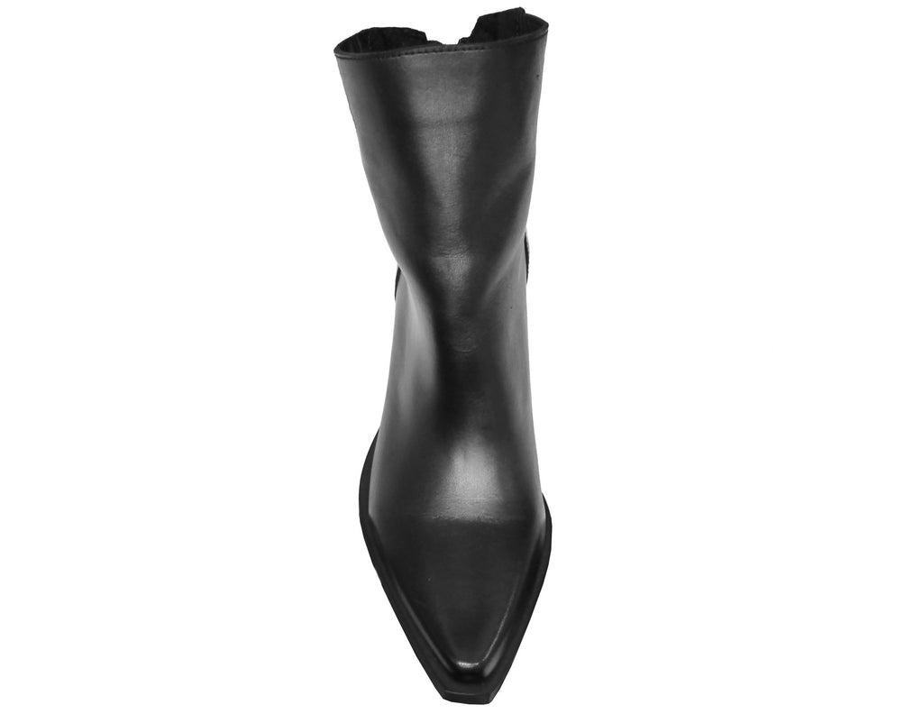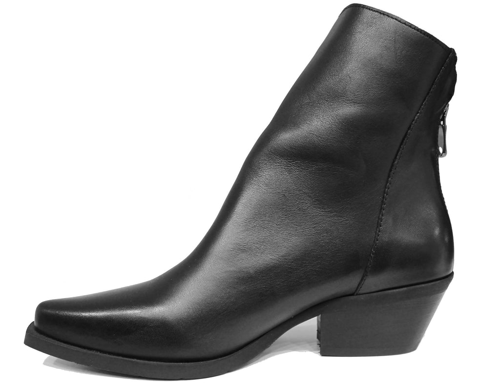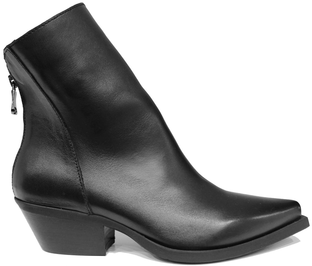 Stivaletto Texano artigianale a punta, modello DX2215, realizzato in vera pelle nera con una suola in gomma dallo stile elegante e cerniera posteriore.