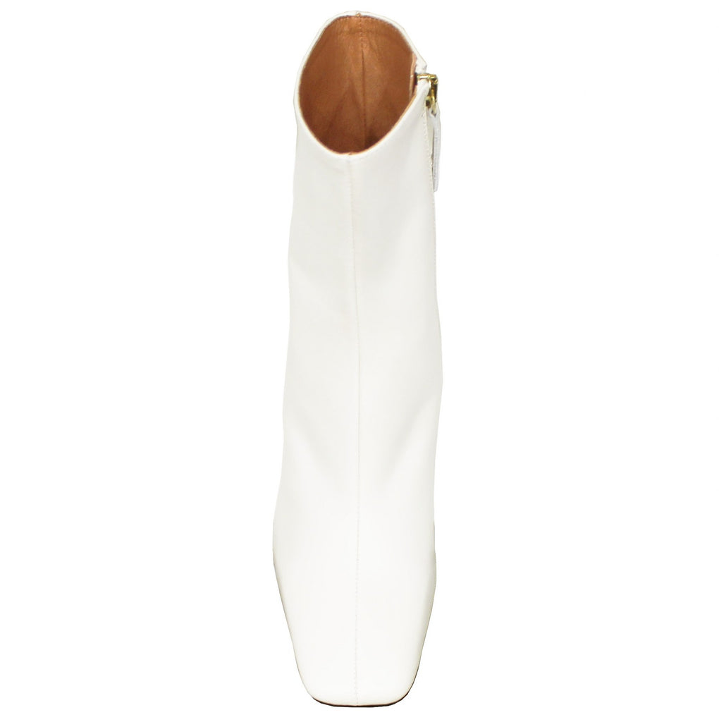 TRONCHETTO DONNA PUNTA QUADRATA PELLE BIANCO PANNA