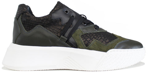 SNEAKER UOMO PELLE VERDE SUOLA NOCCIOLA