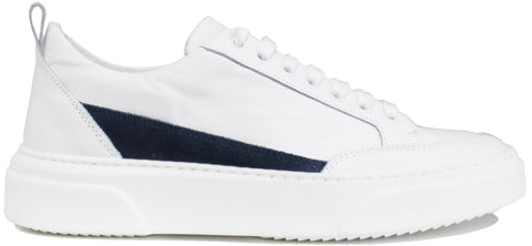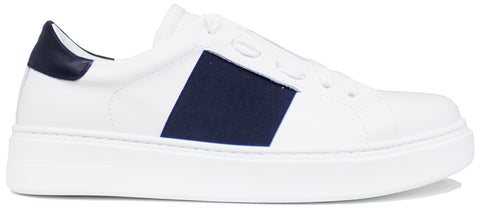 SNEAKER UOMO ELASTICO PELLE BIANCO/BLU