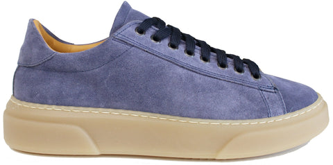 SNEAKER UOMO PELLE BLU SUOLA NOCCIOLA