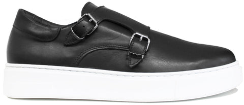 SNEAKER UOMO DOPPIA FIBBIA PELLE NERA