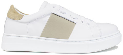 SNEAKER UOMO ELASTICO PELLE BIANCO/BEIGE