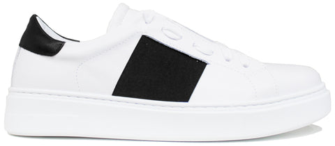 SNEAKER UOMO ELASTICO PELLE BIANCO/NERA