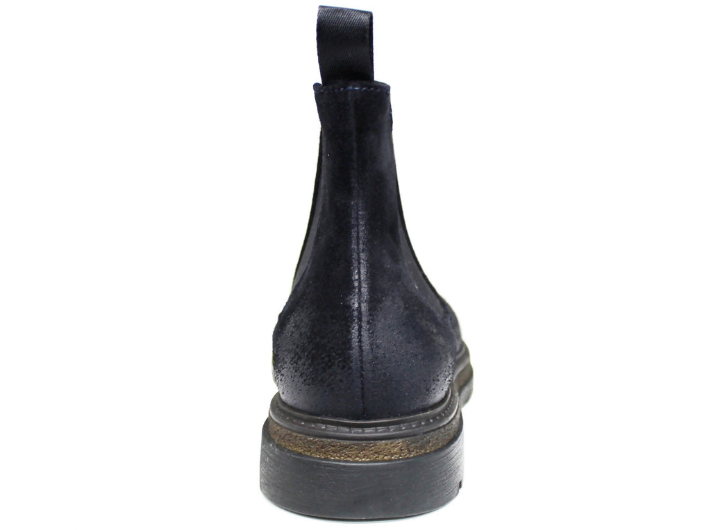 vista posteriore scarpe uomo di tendenza beatles blu scuri in camoscio vera pelle marchio guido ferri 1182 stivaletti chelsea boots con elastico stile casual eleganti sportivi con punta rotonda suola carrarmato flessibile calzature artigianali online 100% made in italy comode con negozio a civitanova marche collezione moda spedizioni in tutta Italia pagamento alla consegna