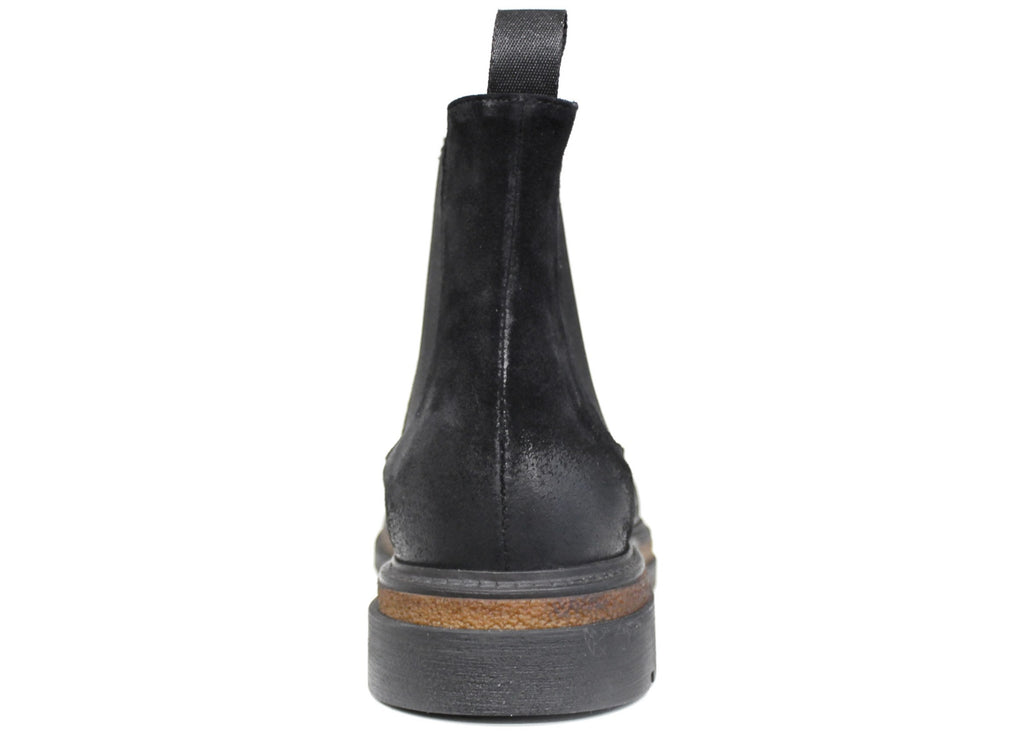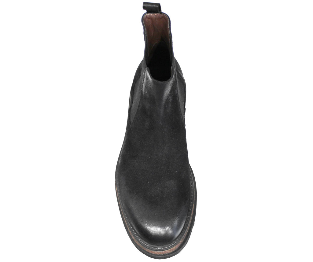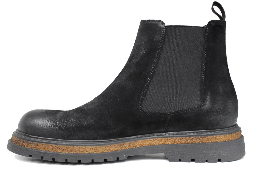 Stivaletto Chelsea uomo artigianale, modello 1182, realizzato in camoscio nero ingrassato con una suola carrarmato che dona al modello uno stile elegante ma allo stesso tempo sportivo.