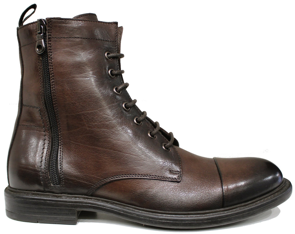 Stivaletto artigianale elegante uomo, modello 1230, realizzato in vera pelle marrone testa di moro che, oltre a essere stringato, presenta una comoda cerniera laterale (nascosta nella parte interna) che ne facilità la calzata