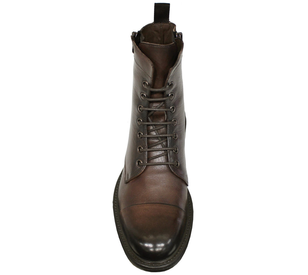 vista frontale dall'alto scarpe uomo tendenza stivaletti anfibi marroni testa di moro eleganti in vera pelle con suola in gomma polacchini stringati guido ferri 1230 calzature artigianali online 100% made in italy negozio a civitanova marche collezione moda soletta morbida estraibile per plantare spedizioni in tutta Italia pagamento alla consegna