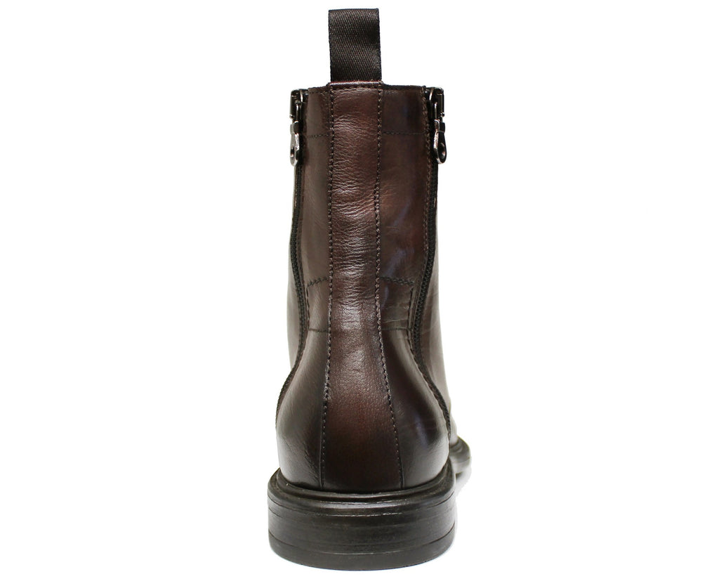 vista posteriore scarpe uomo tendenza stivaletti anfibi marroni testa di moro eleganti in vera pelle con suola in gomma polacchini stringati guido ferri 1230 calzature artigianali online 100% made in italy negozio a civitanova marche collezione moda soletta morbida estraibile per plantare spedizioni in tutta Italia pagamento alla consegna