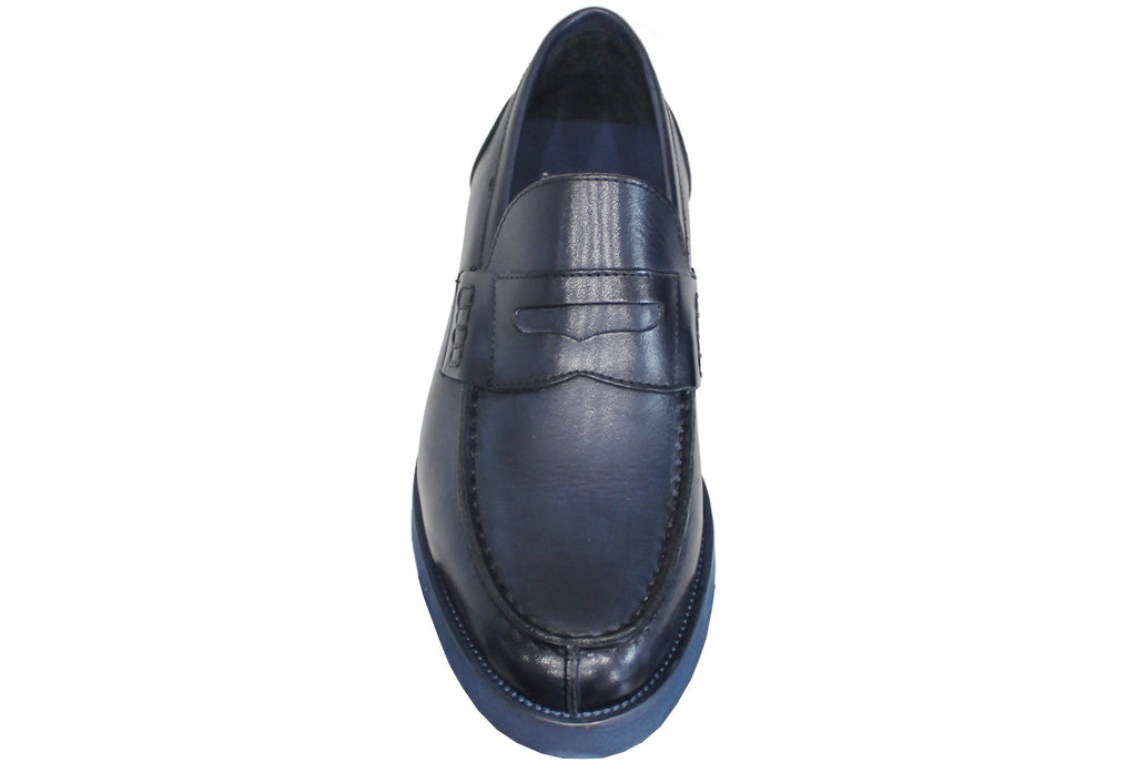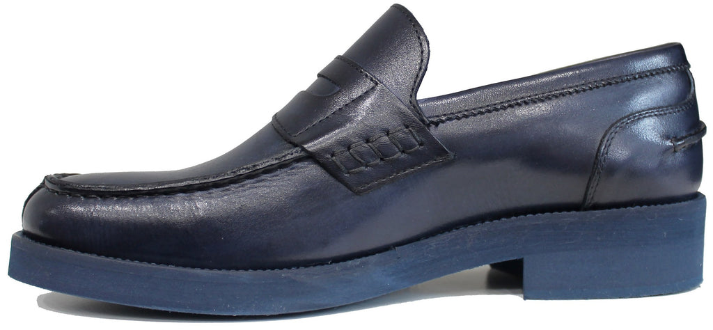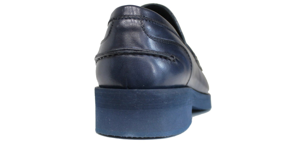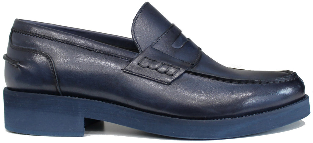 Mocassino uomo artigianale, modello 1301, realizzata in vera pelle blu, molto morbida, con suola MICRO EXTRALIGHT davvero molto leggera!