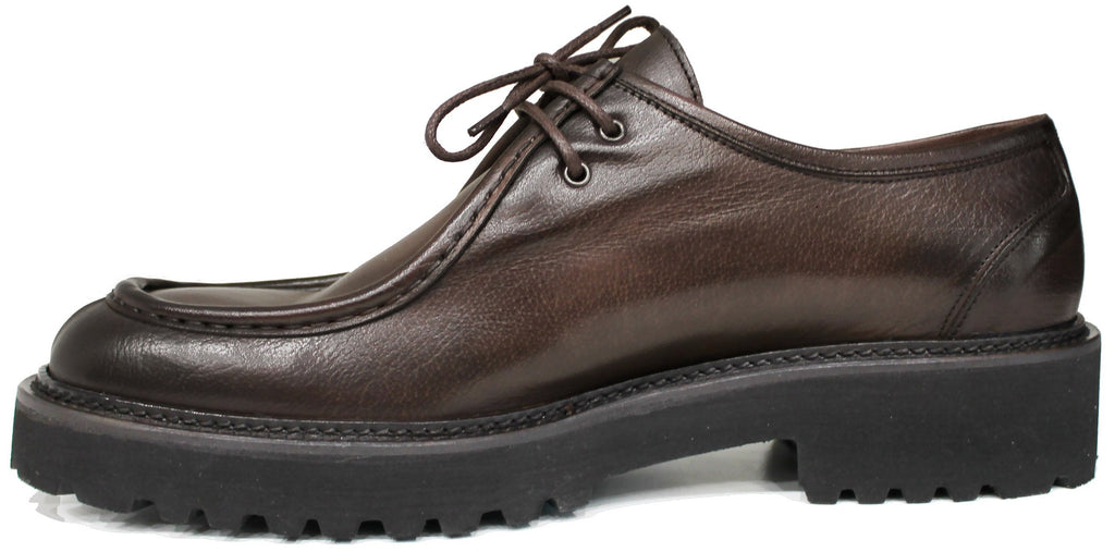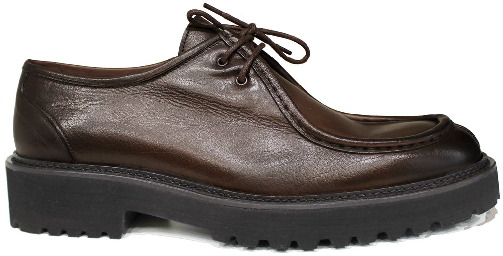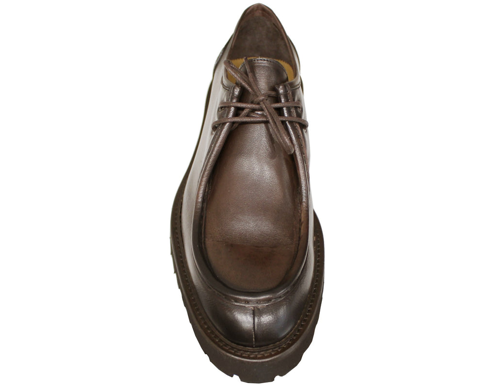 Scarpa artigianale uomo, modello 6588, ispirata alla classica forma "INGEGNERE" (di gran tendenza), realizzata in vera pelle marrone testa di moro.