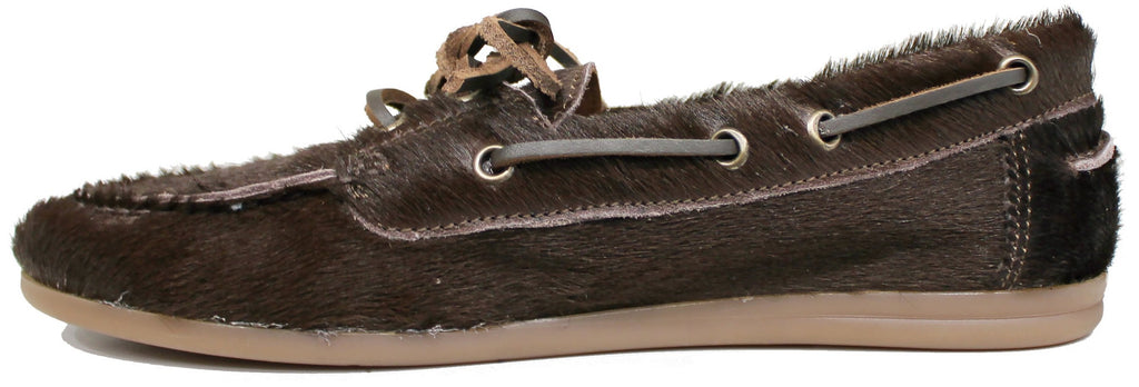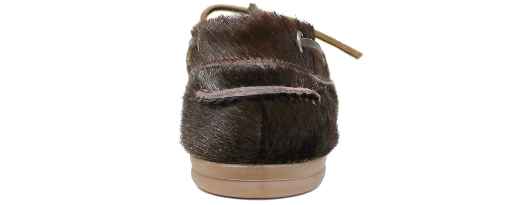 Mocassino donna artigianale, modello BARCA, realizzato in cavallino marrone testa di moro.