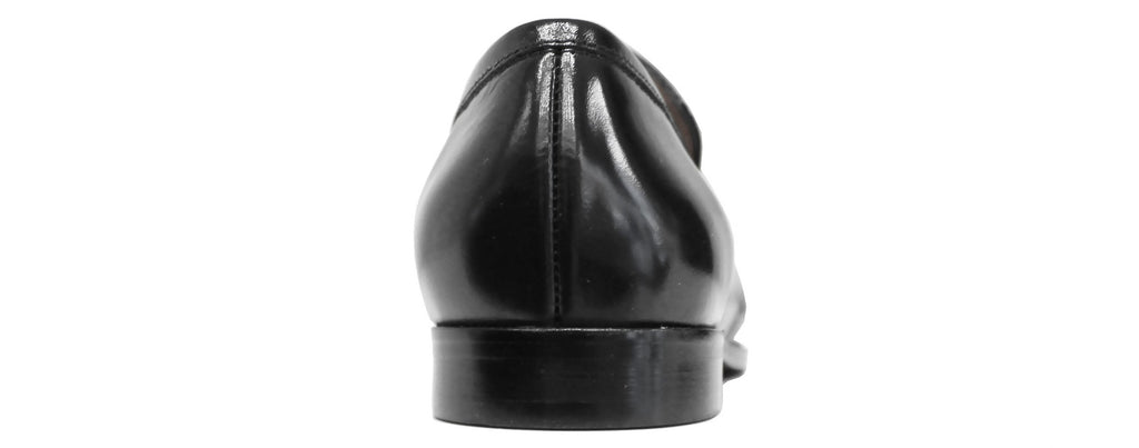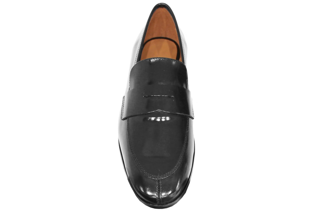 Mocassino donna artigianale, modello ANGEL ALARCON 25516, dalla classica forma intramontabile "college" realizzato in vera pelle nera, effetto lucido.
