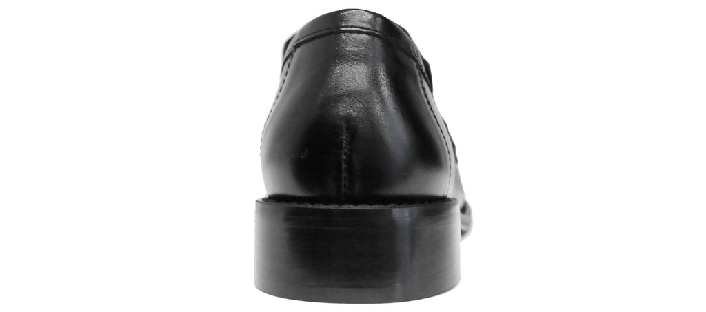 vista posteriore scarpe donna di tendenza mocassini eleganti neri lucidi stile college con punta grande rotonda effetto vintage retrò in vera pelle marchio angel alarcon 25611 stile casual per ufficio con tacco basso e suola flessibile calzature artigianali online comode con negozio a civitanova marche collezione moda spedizioni in tutta Italia pagamento alla consegna