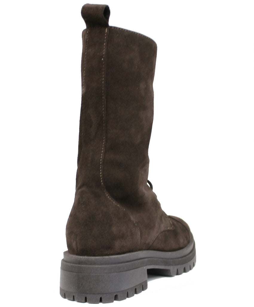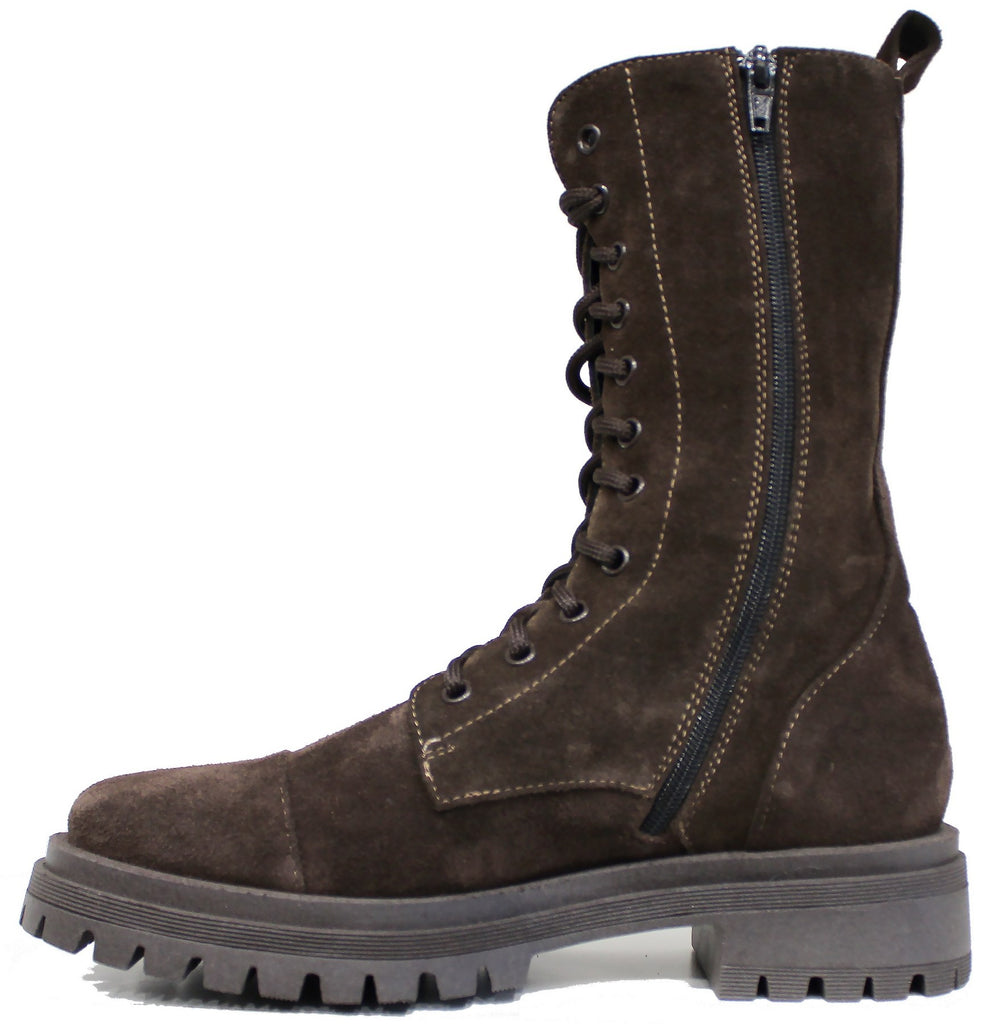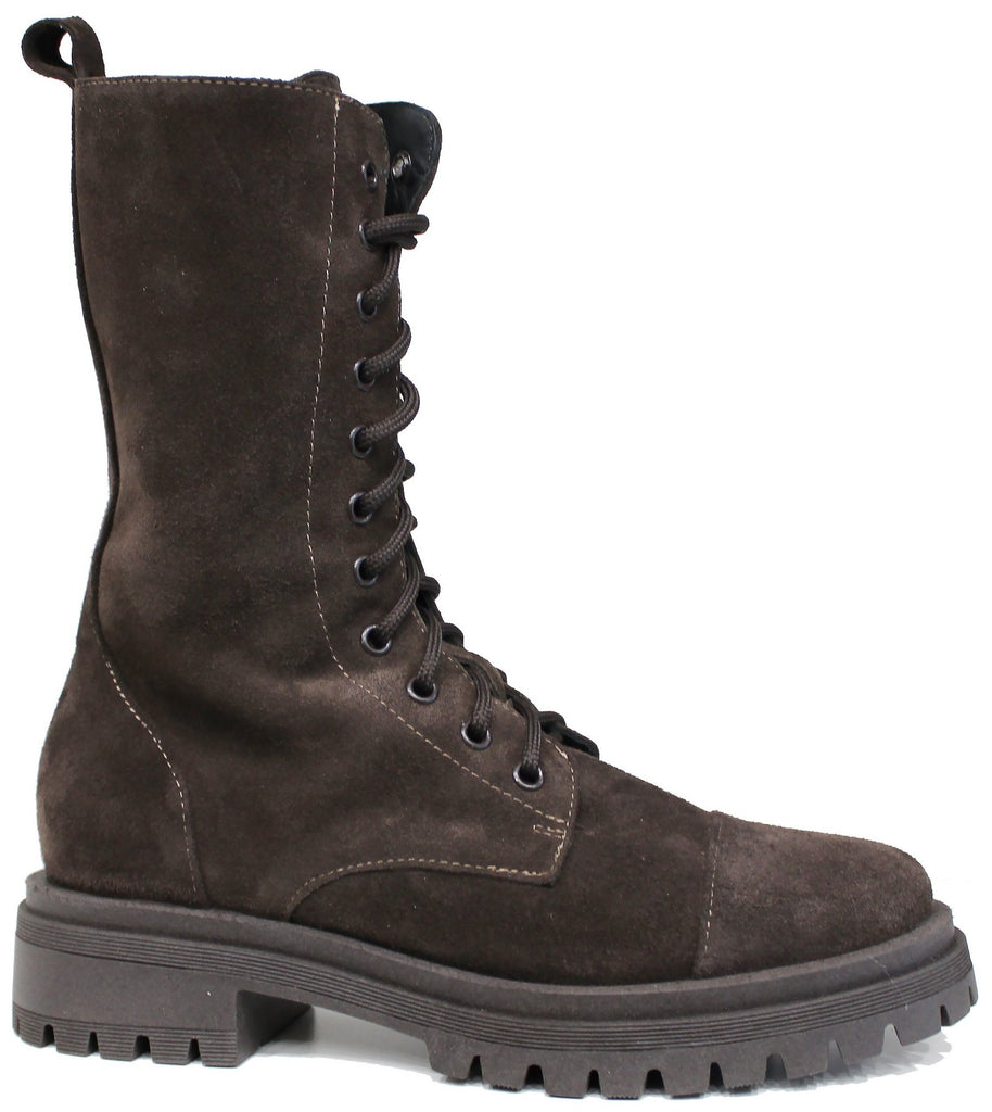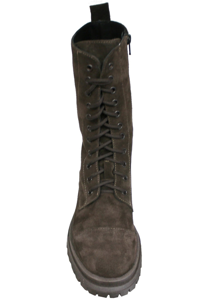 Bellissimo anfibio stringato ACS CALZATURE ITALIANE in vera pelle scamosciata testa di moro, modello CROWN 1501 11F, con la cerniera laterale posta nella parte interna del modello e la suola stile carrarmato che dona allo stivaletto uno stile elegante/sportivo; un articolo molto versatile che non può assolutamente mancare nella collezione di una donna!