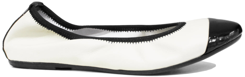 |BALLERINA DONNA BICOLORE PELLE PANNA/NERO|
