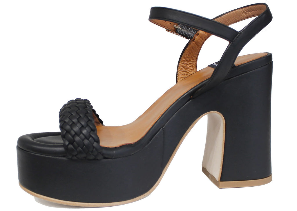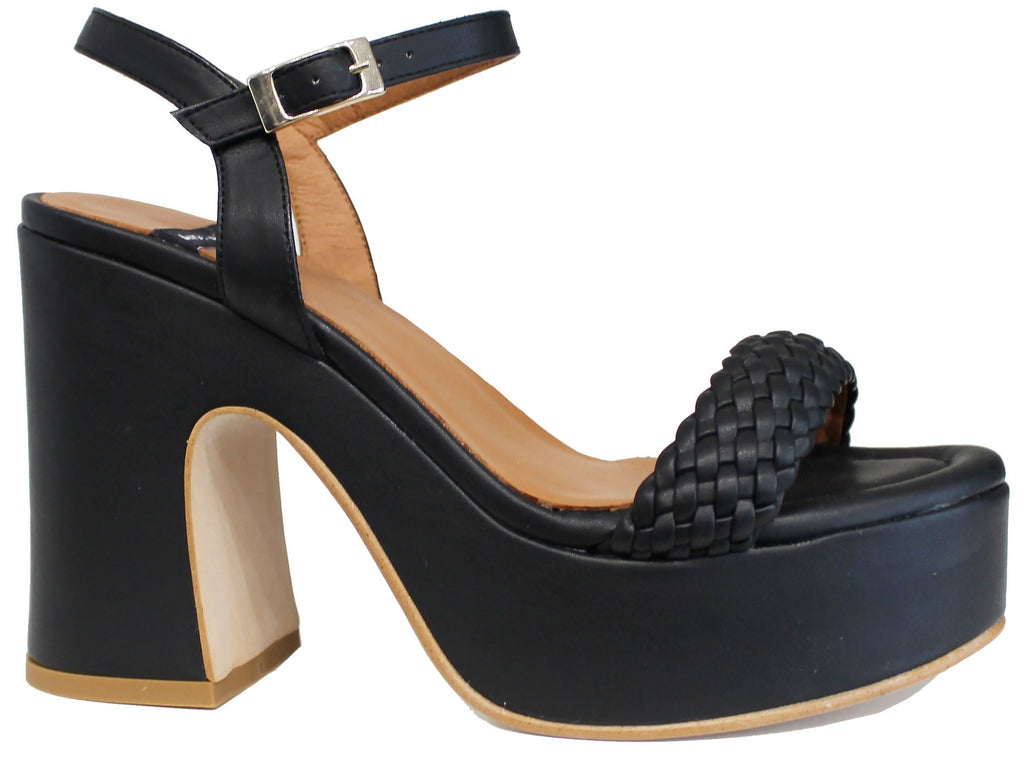 |SANDALO TACCO LARGO PLATEAU PELLE NERA|