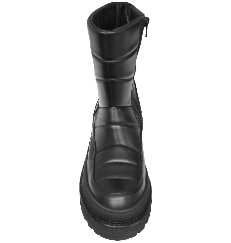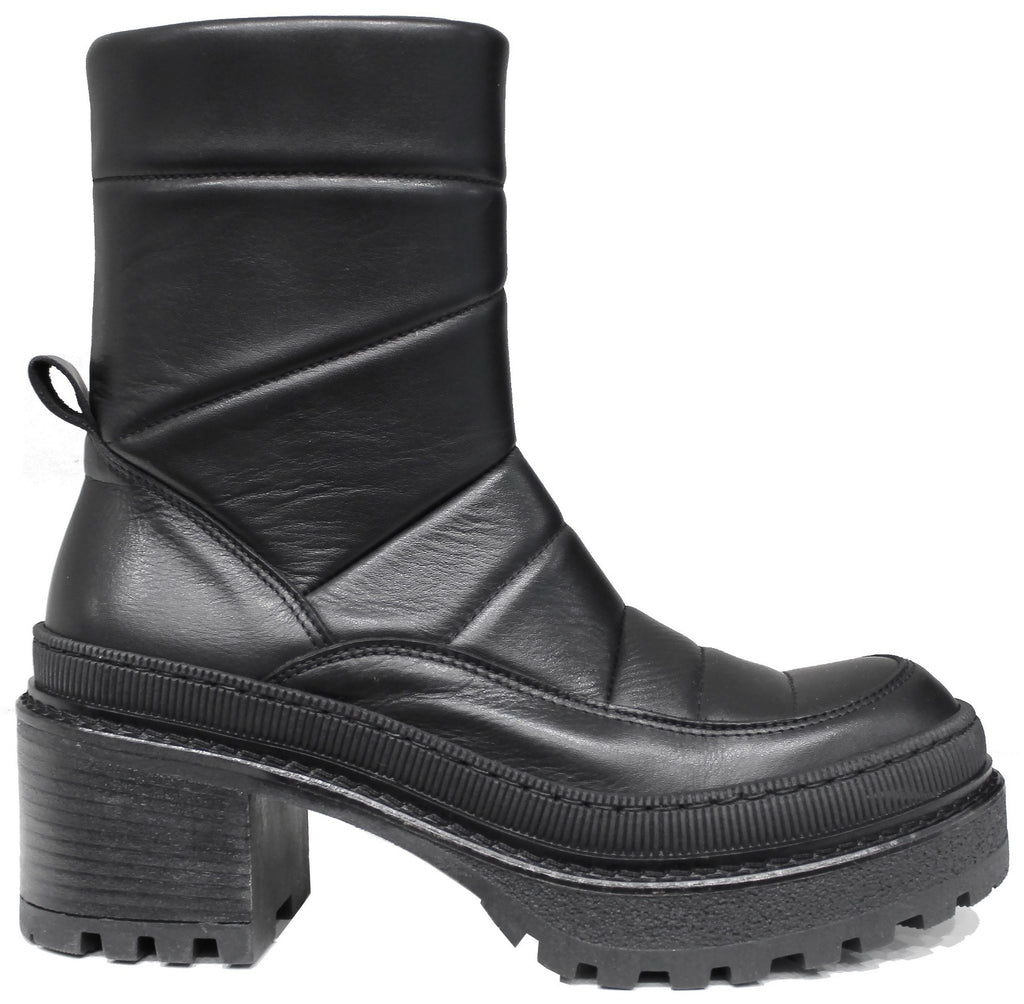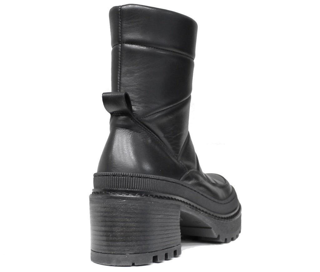 Bellissimo stivaletto artigianale, modello CROWN M5, dallo stile "pieghettato" in vera pelle nera con un comodissimo tacco largo e plateau!