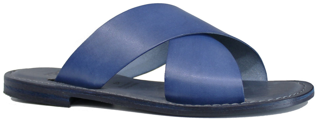 |CIABATTA UOMO INCROCIATA PELLE BLU|