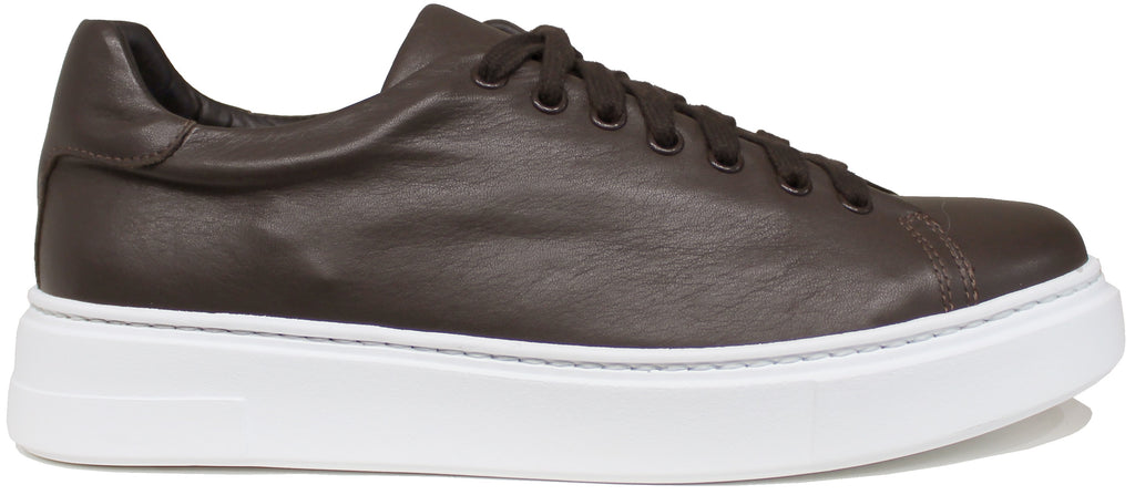 Sneaker uomo artigianale oramai diventata un nostro vero e proprio MUST, modello CROWN MARINO, in vera pelle testa di moro con una nuova suola rinnovata dalla bellissima forma; un modello dal particolare stile casual elegante/sportivo che non può assolutamente mancare nella collezione di un uomo!