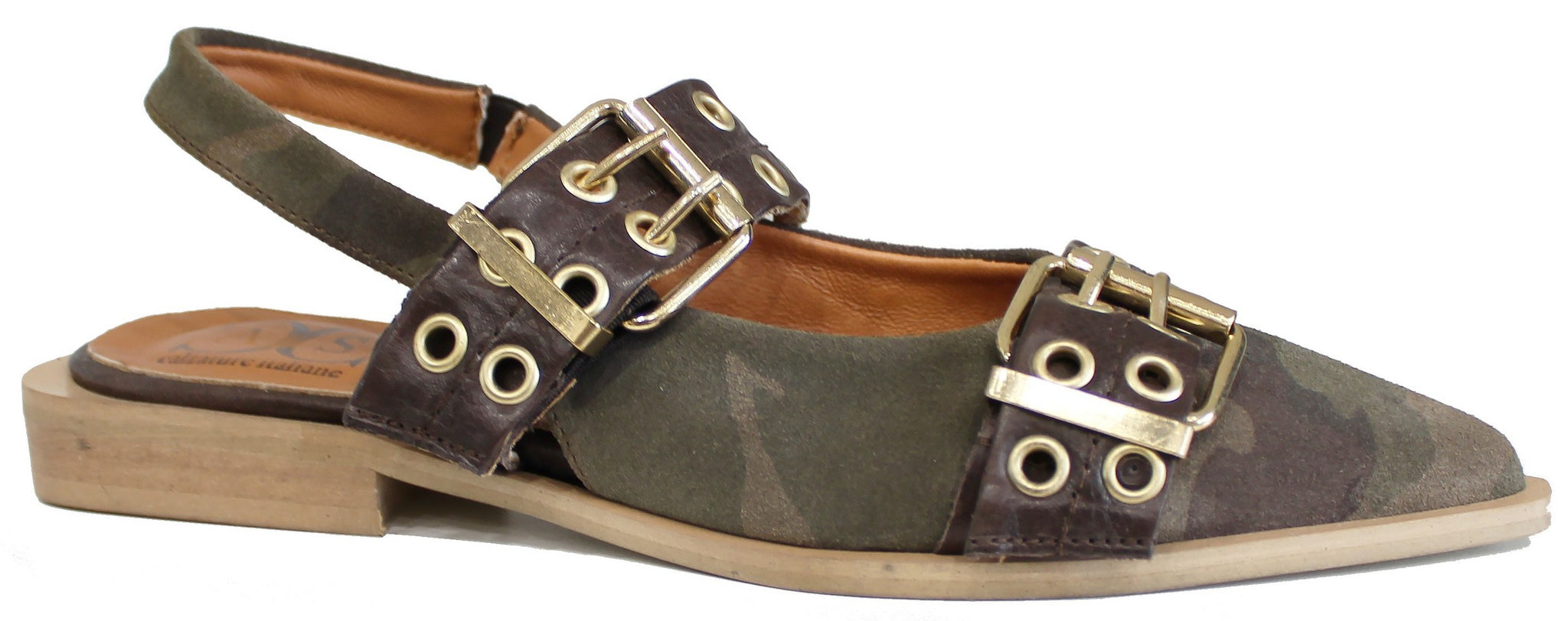 |SLINGBACK BASSA A PUNTA BORCHIATA CAMOSCIO MIMETICO|