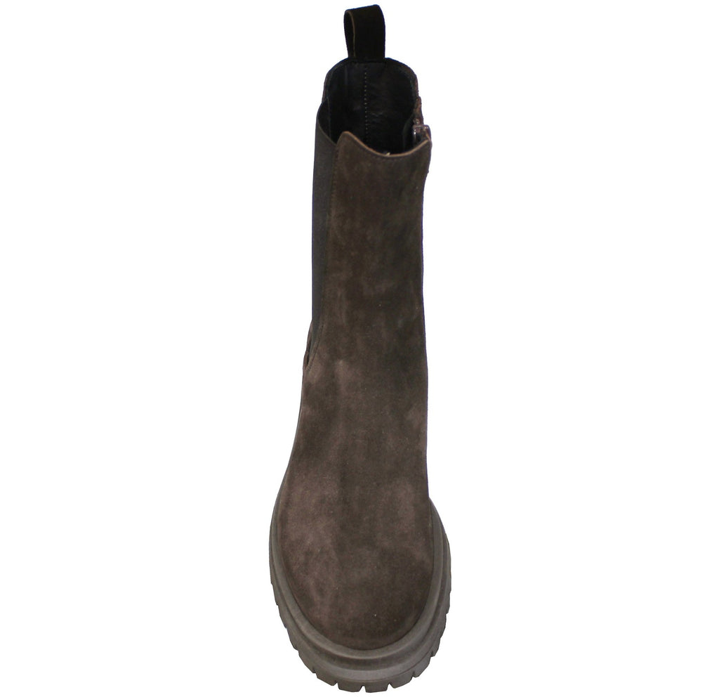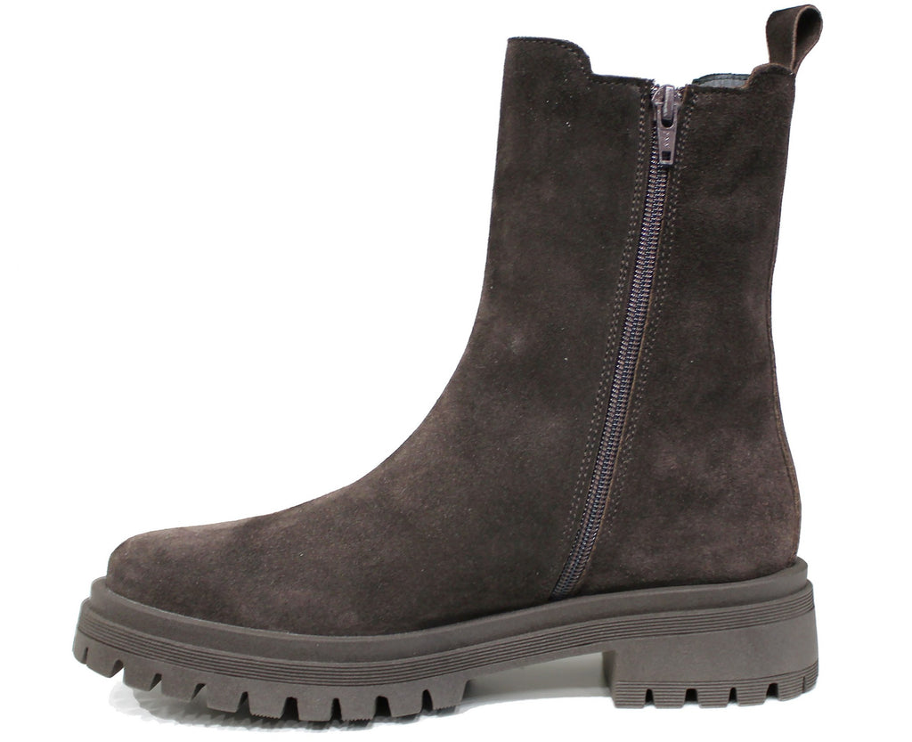 Stivaletto Chelsea donna artigianale, modello BEATLES NC 18+ZIP, realizzato in vera pelle scamosciata marrone testa di moro con una cerniera laterale (a posto del classico doppio elastico) che ne facilita la calzata