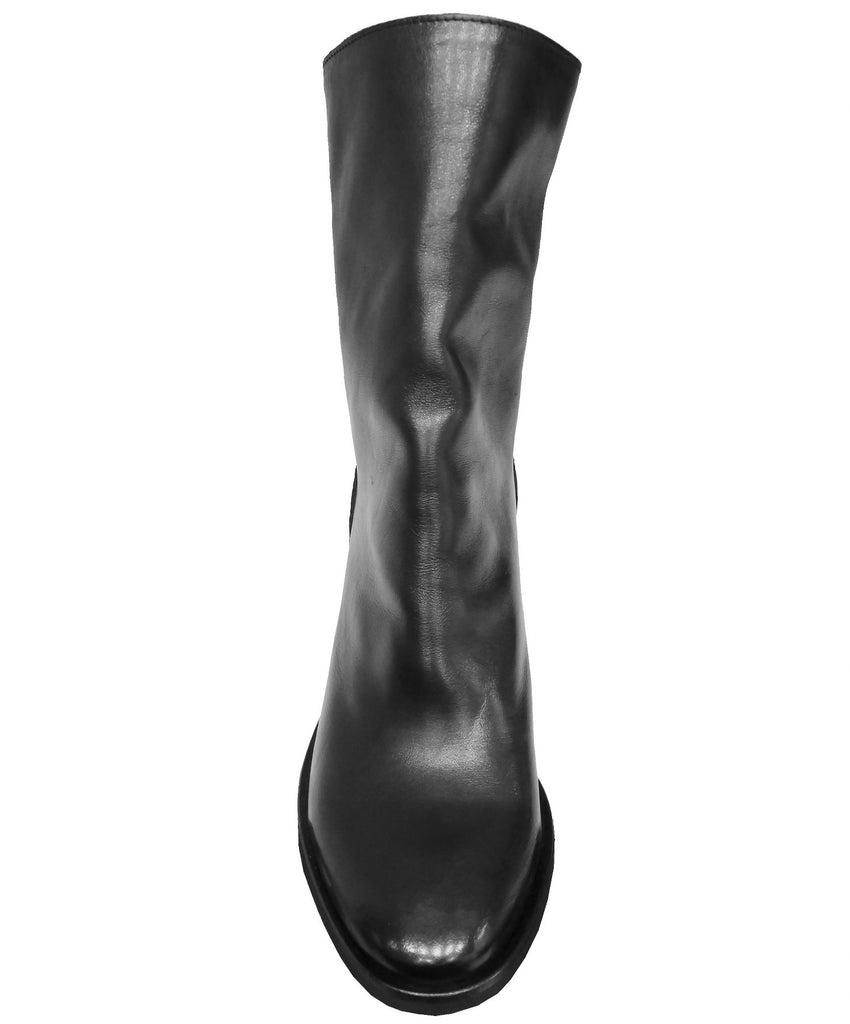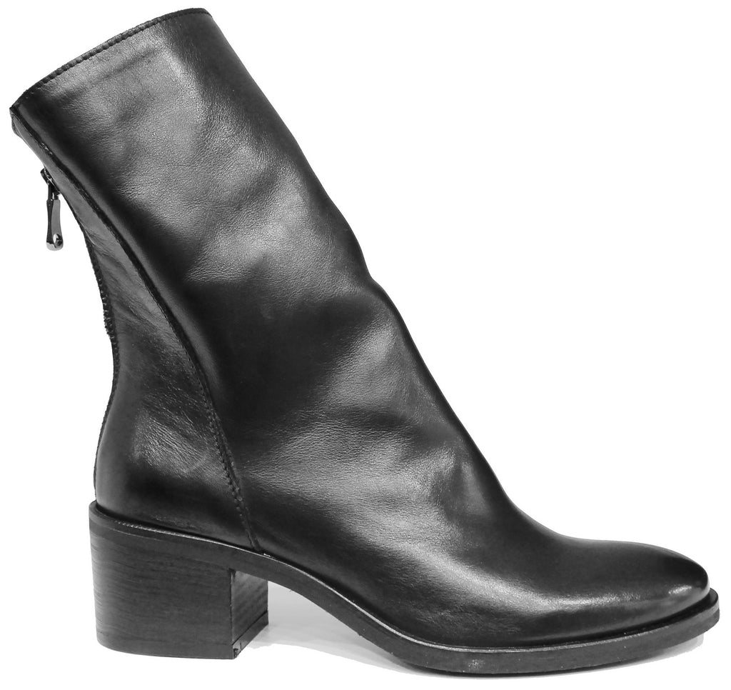 Stivaletto donna artigianale, modello TC2177, realizzato in vera pelle morbidissima nera con una cerniera posteriore alta tutto lo stivaletto e un comodo tacco largo