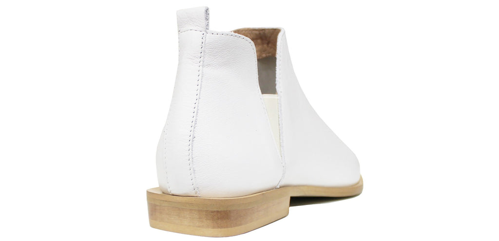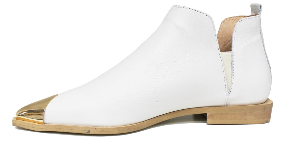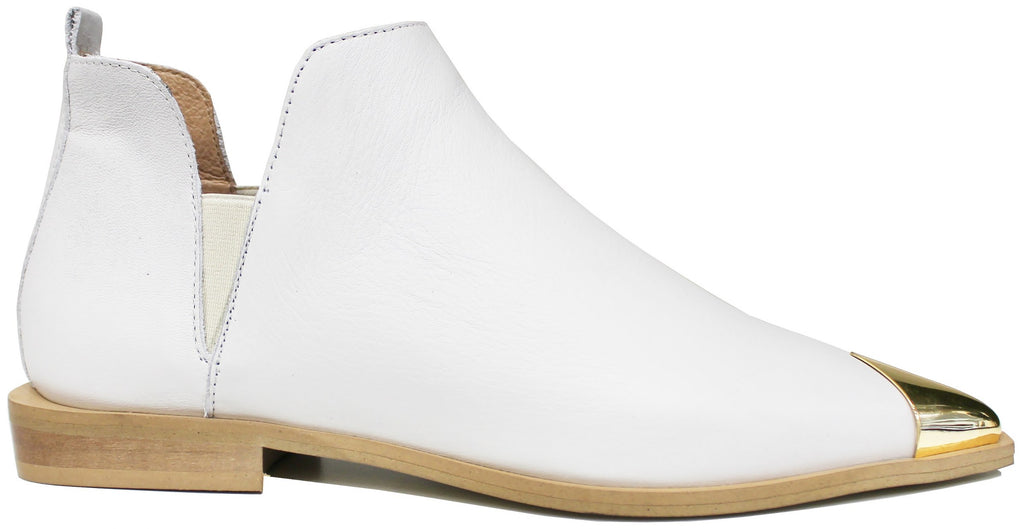 Bellissimo ed elegante stivaletto artigianale con puntale dorato, modello KBAS-SOFIA, in vera pelle bianca con elastici in entrambe le aperture laterali