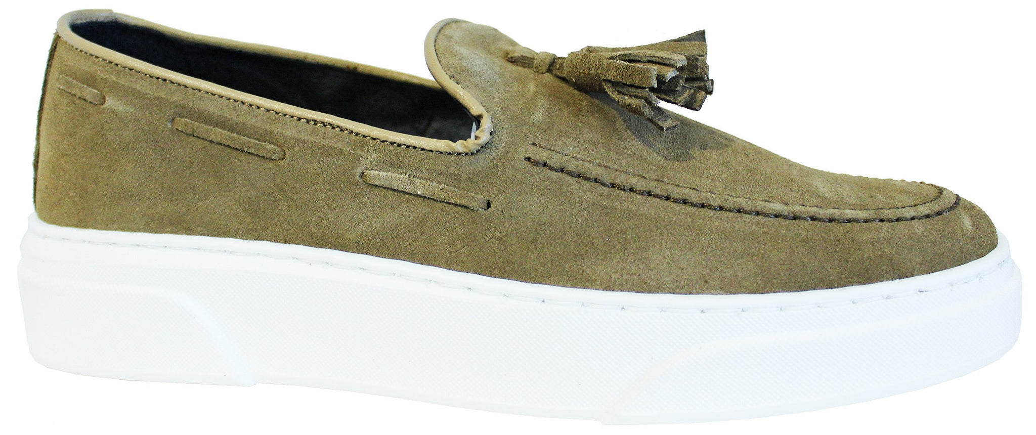 Stupendo Mocassino ACS CALZATURE ITALIANE modello AZ218, in camoscio grigio tortora, dal particolare stile sportivo che non può assolutamente mancare nella collezione di un uomo!