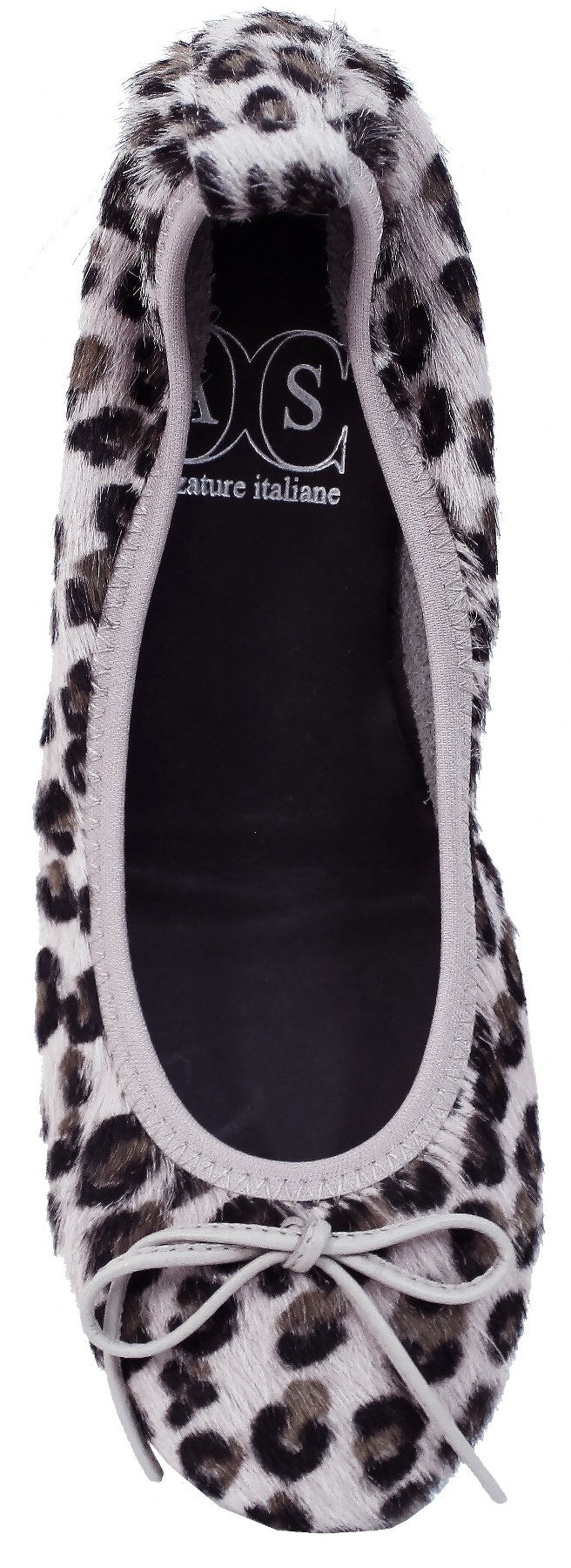 Ballerina a punta arrotondata, articolo MINNI, in vero cavallino color leopardato maculato con tacco interno di 2cm e fondo gomma