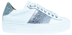 |ACS SNEAKER DONNA CROWN PELLE BIANCA GLITTER ARGENTO|