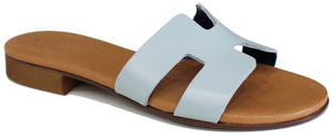 Bellissima ciabattina CROWN, modello 01, dalla forma molto in voga e di super tendenza quest'estate, in vera pelle celeste, dalla suola imbottita molto morbida e un comodissimo tacco largo; un articolo versatile che non può assolutamente mancare nella collezione di una donna!