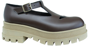 Stupenda scarpa ACS CALZATURE ITALIANE Old Style con cinturino in vera pelle abrasivata lucida color marrone Testa di Moro, articolo 3958, con suola in tinta nocciola stile platform alta 6 cm al tacco e 4 cm in pianta, elegante / sportivo che non può assolutamente mancare nella collezione di una donna!