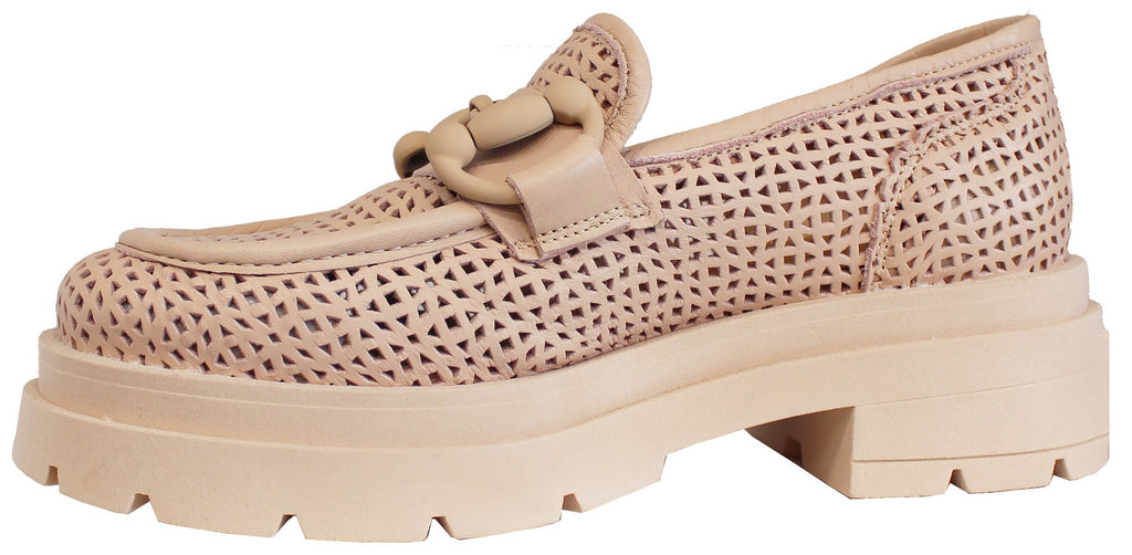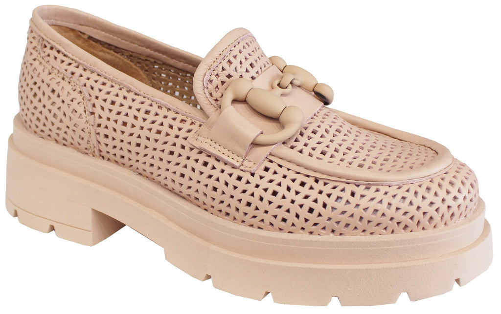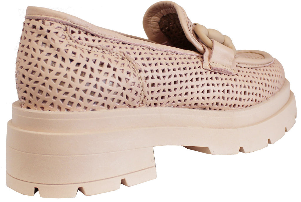 Bellissimo Mocassino ACS CALZATURE ITALIANE in vera pelle forata color ecrù con accessorio un morsetto in tinta con il colore del pellame; articolo MOCASSINO GA11640, dalla suola stile carrarmato, molto di tendenza per questa stagione, dallo stile elegante / sportivo che non può assolutamente mancare nella collezione di una donna!