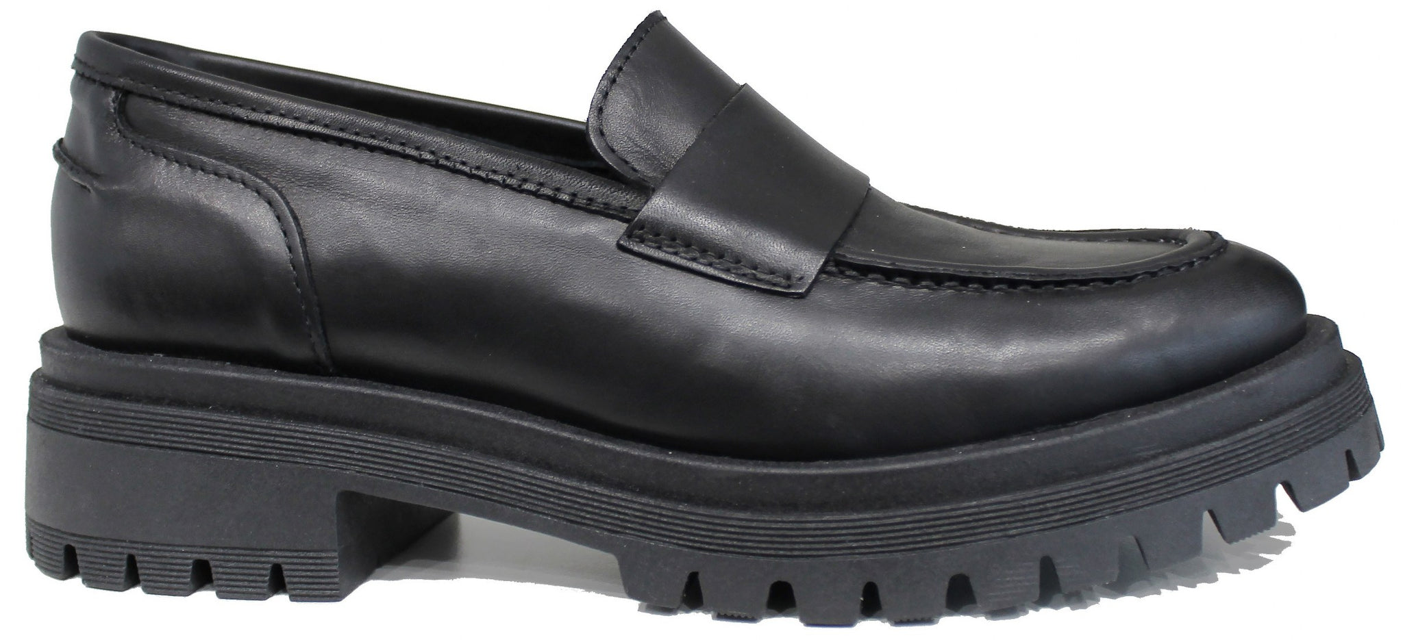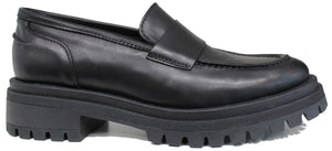 Super tendenza della stagione questo bellissimo mocassino, modello CROWN MOCASSINO FL, con suola alta carrarmato in vera pelle color nera morbidissima