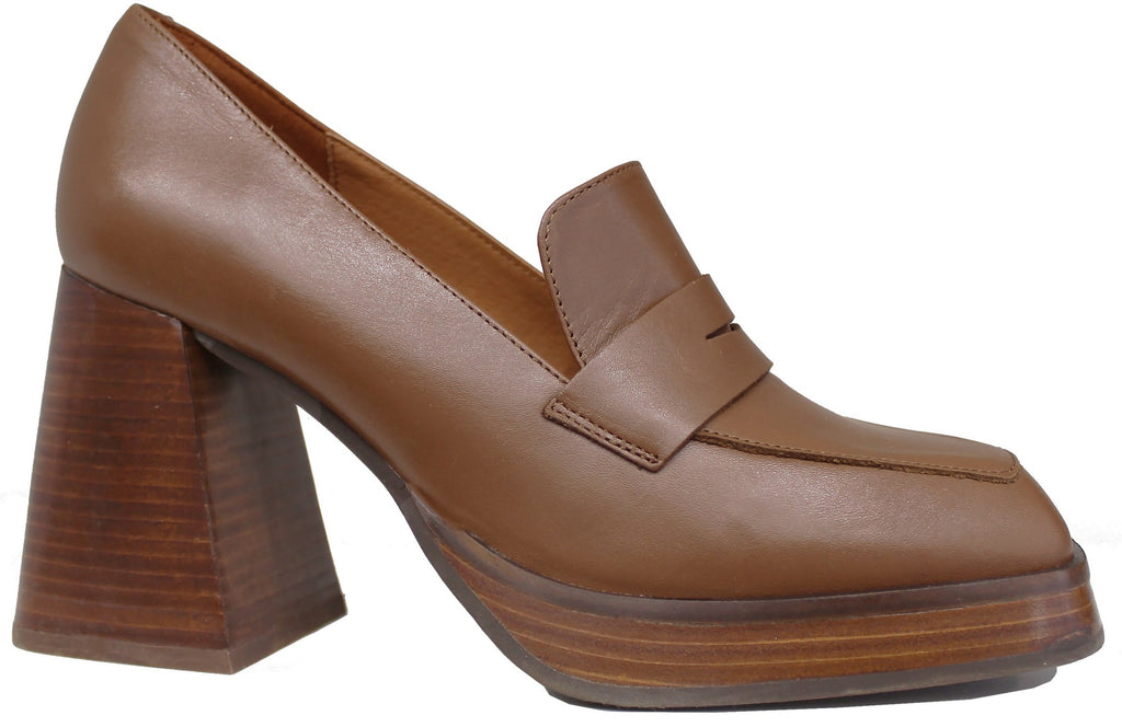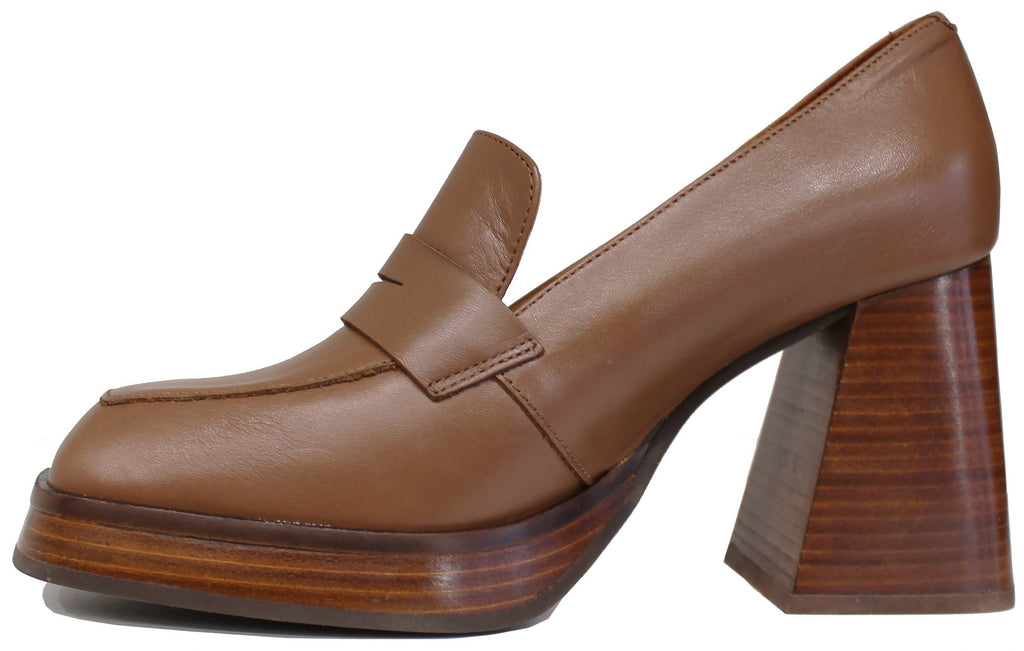 |MOCASSINO CON TACCO PUNTA QUADRATA PELLE TAUPE|