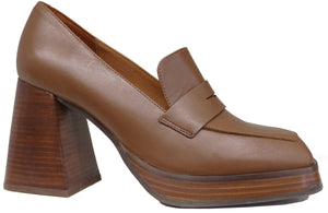 Bellissimo mocassino artigianale in vera pelle grigio taupe, modello 23572, dallo stile di super tendenza questa stagione ossia il tacco alto largo (effetto legno) e comodo e la punta quadrata!