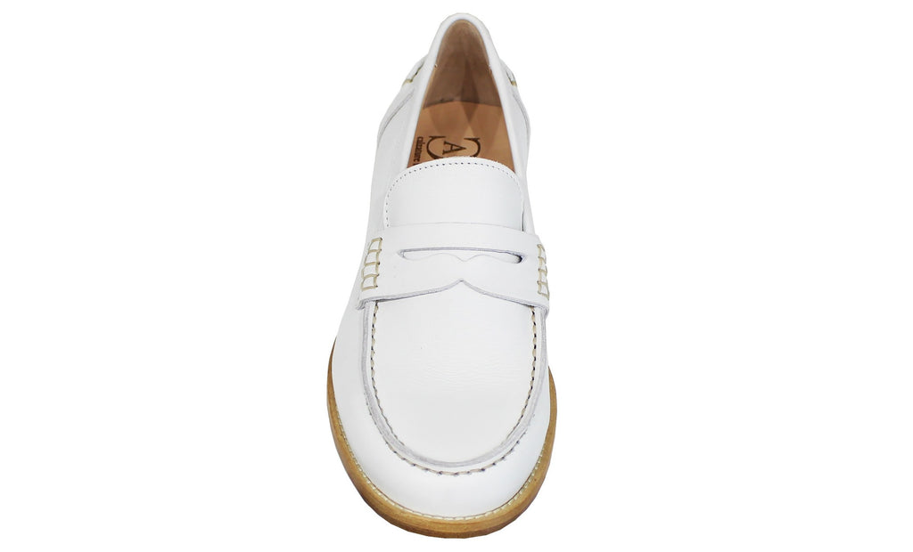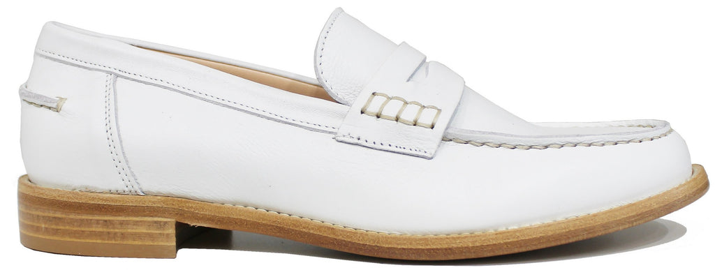 Bellissimo mocassino artigianale con bocca di leone, modello 247-2, dalla punta rotonda e pellame morbidissimo bianco; il fondo è in vero cuoio il che rende il modello una scarpa di qualità, elegante e comoda, che non può assolutamente mancare nella collezione di una donna!