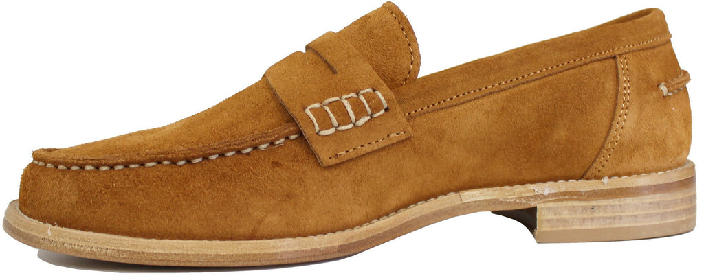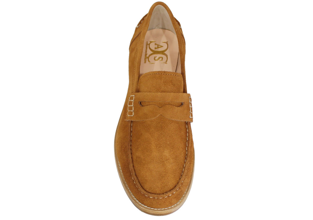 Bellissimo mocassino artigianale con bocca di leone, modello 247-2, dalla punta rotonda e pellame scamosciato color cuoio morbidissimo; il fondo è in vero cuoio il che rende il modello una scarpa di qualità, elegante e comoda, che non può assolutamente mancare nella collezione di una donna!