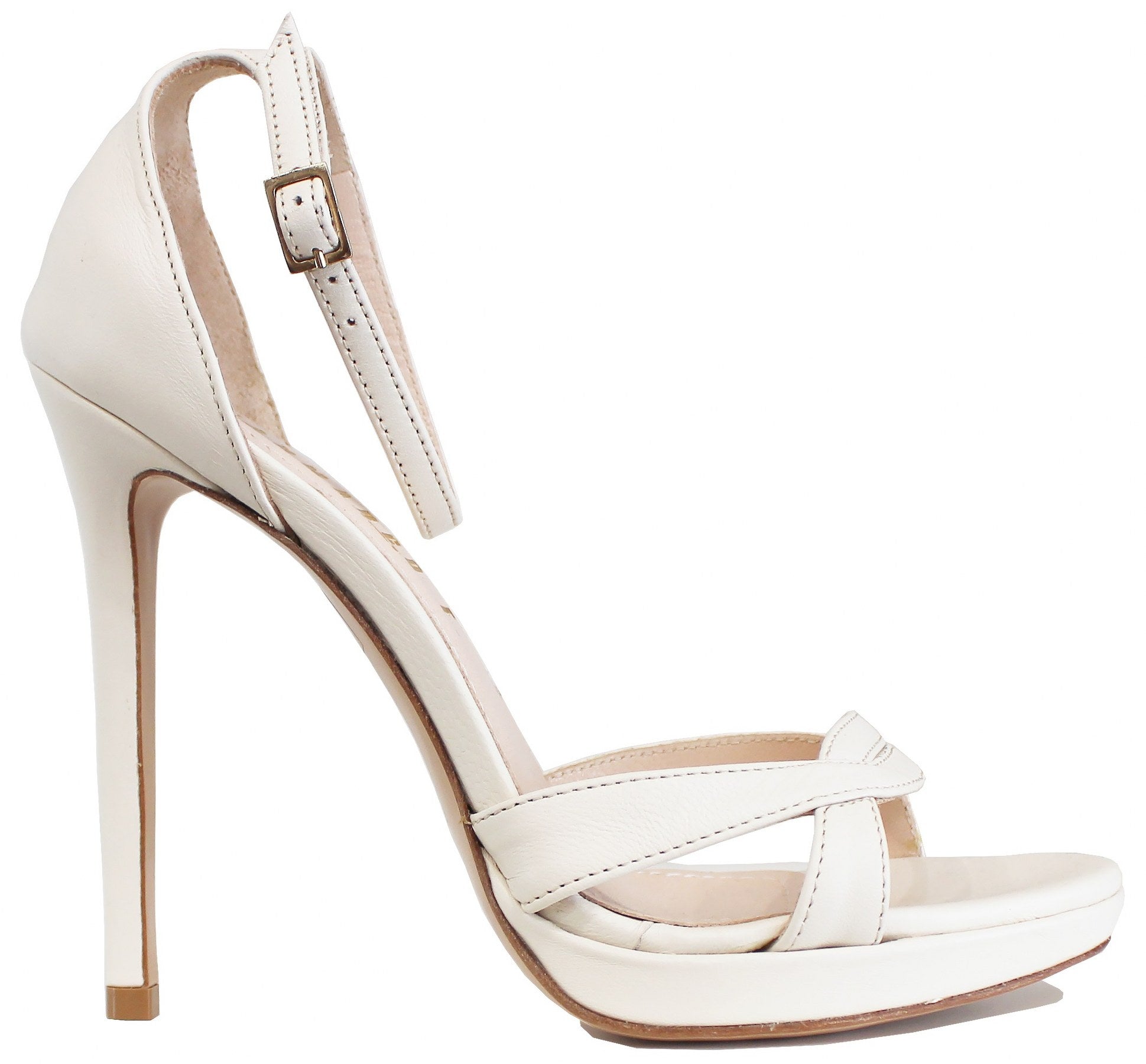 Bellissimo sandalo artigianale, modello M894, con tacco alto a spillo e plateau in vera pelle bianco panna e fascia incrociata che tiene bene il piede per un ottima calzata; una scarpa che siamo sicuri vi farà innamorare sin dal primo passo!