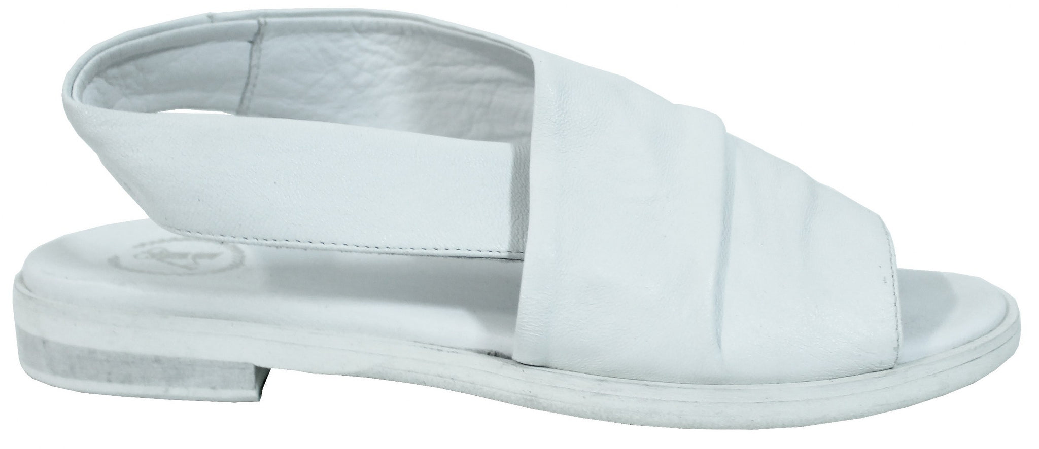Bellissimo sandalo fasciato, articolo LISA02, in vera pelle bianca con cinturino elastico che abbraccia il tallone e fondo in gomma