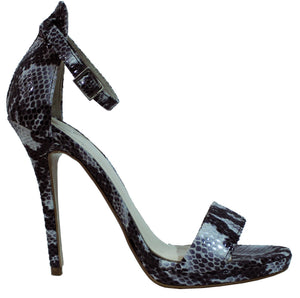 Stupendo sandalo, articolo E010, in vera pelle stile rettile color roccia con tacco alto a spillo, plateau e cinturino alla caviglia: un articolo classico, molto elegante, che non può assolutamente mancare nella collezione di una donna!