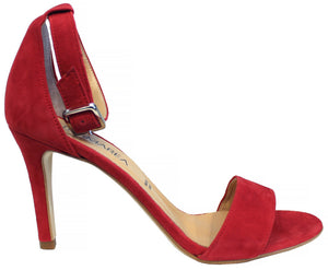 Stupendo sandalo ALTRAMAREA, articolo 6242, in vera pelle scamosciata rossa con tacco medio alto a spillo e cinturino forma larga alla caviglia: un articolo classico, molto elegante e comodo, che non può assolutamente mancare nella collezione di una donna!