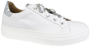 Sneaker donna ACS CALZATURE ITALIANE in vera pelle color bianco, con dei bellissimi accessori brillantinati a forma di insetti, modello 1719 SF, dal particolare stile elegante/sportivo che non può assolutamente mancare nella collezione di una donna!