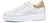 vista laterale interna scarpe sneaker bassa alex mixer in vera pelle bianca con tallone dietro scamosciato color cuoio cola interamente borchiato pietre oro pellame molto morbido suola molto leggera alta rialzata in eva oversize 100% made in italy scarpe con negozio a civitanova marche collezione moda soletta morbida estraibile per plantare calzature artigianali made in italy scarpe online pagamento alla consegna