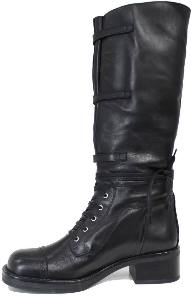 STIVALE DONNA FIBBIE PELLE NERA
