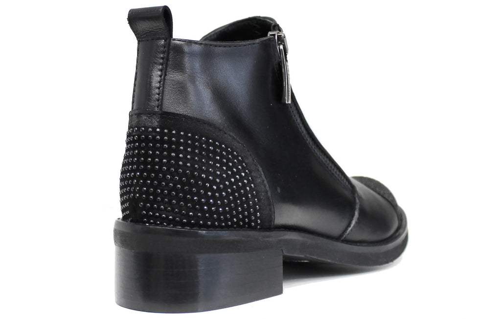 STIVALETTO DONNA ZIP STRASS PELLE NERA