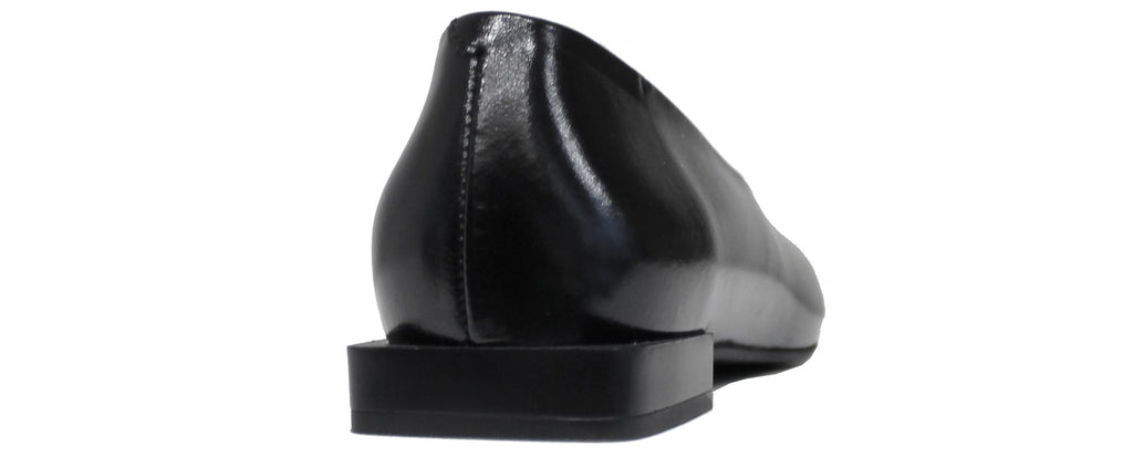 Ballerina artigianale con punta quadrata e dalla particolare scollatura, modello 24508, in vera pelle nera molto morbida e un comodissimo tacco largo basso