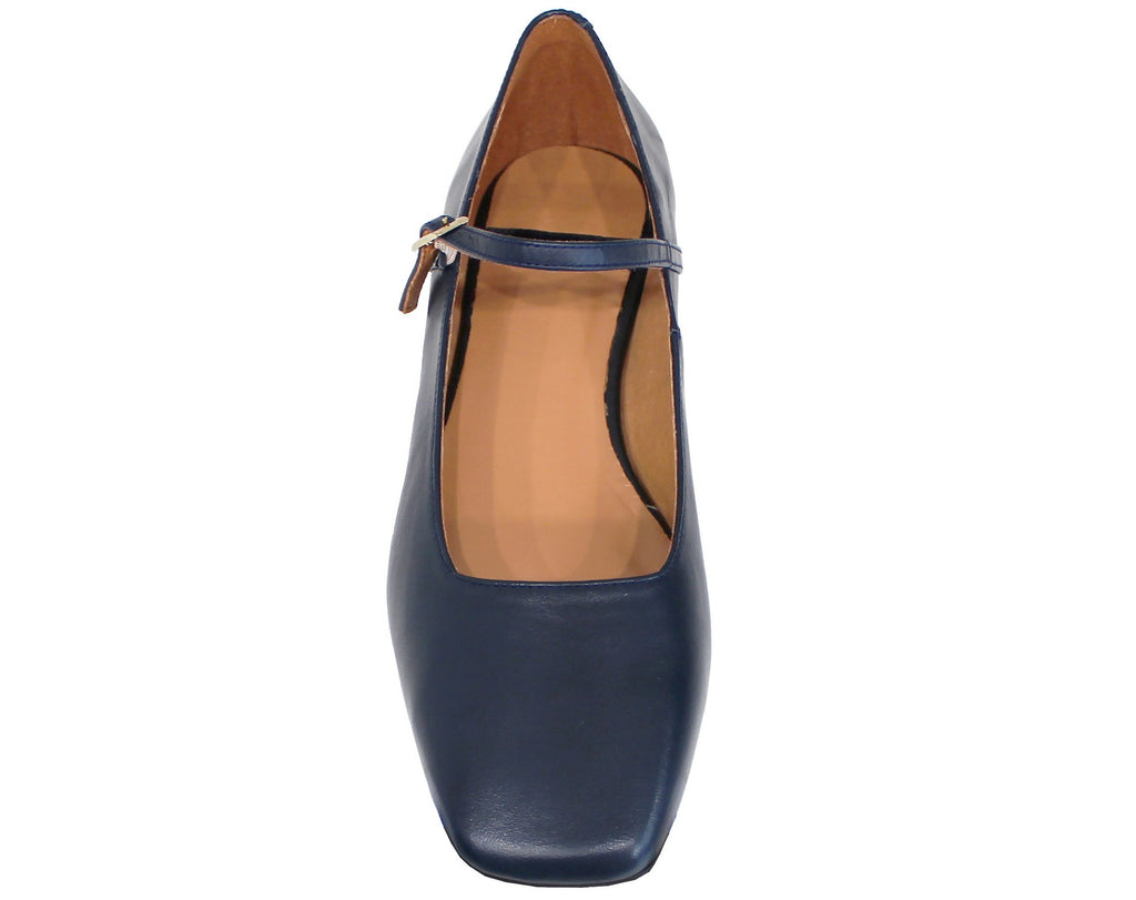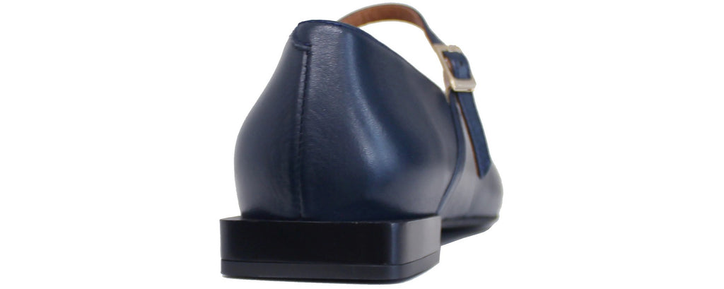 Ballerina artigianale con punta quadrata, modello 24509, in vera pelle blu con il cinturino sul collo del piede che lo fascia benissimo e ne rende ottima la calzata!